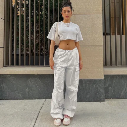 Women’s Cargo Pants | Spring Streetwear Solid Fashion with Drawstring and Pockets