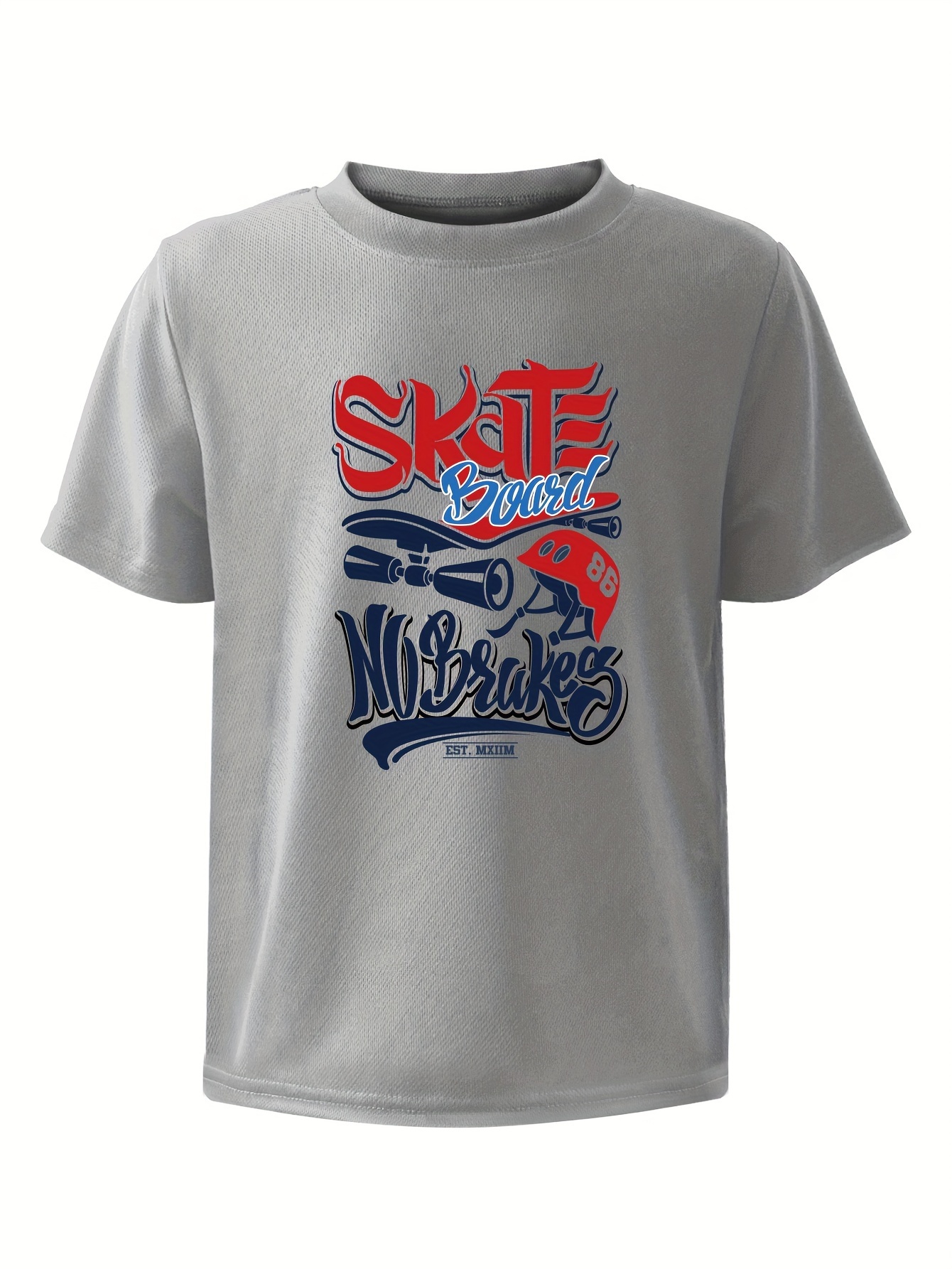 Boys' Geometric Print Stretch Tee - Casual Crew Neck for Spring/Summer