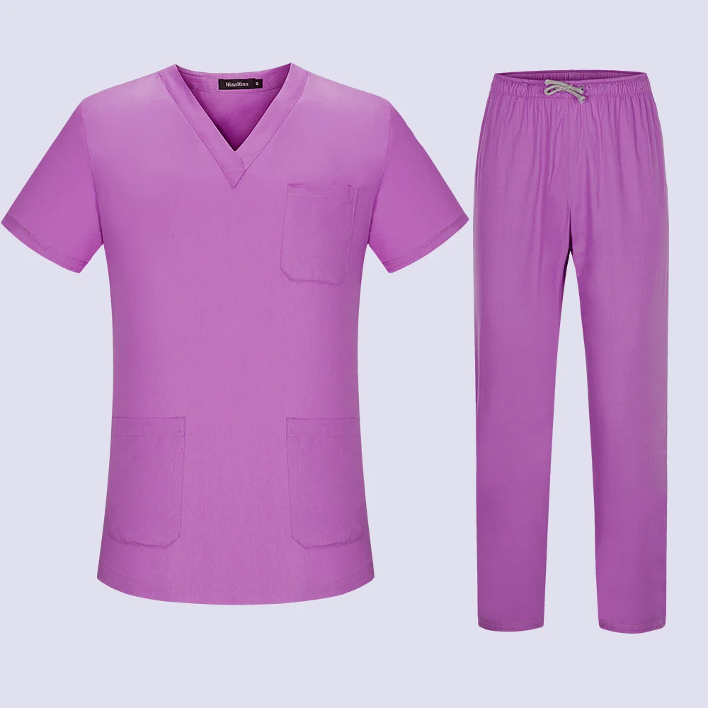 This scrub set is ideal for a variety of professions, including pet grooming, beauty salons, and medical settings. Its unisex design makes it suitable for both men and women, promoting a cohesive look among staff members.