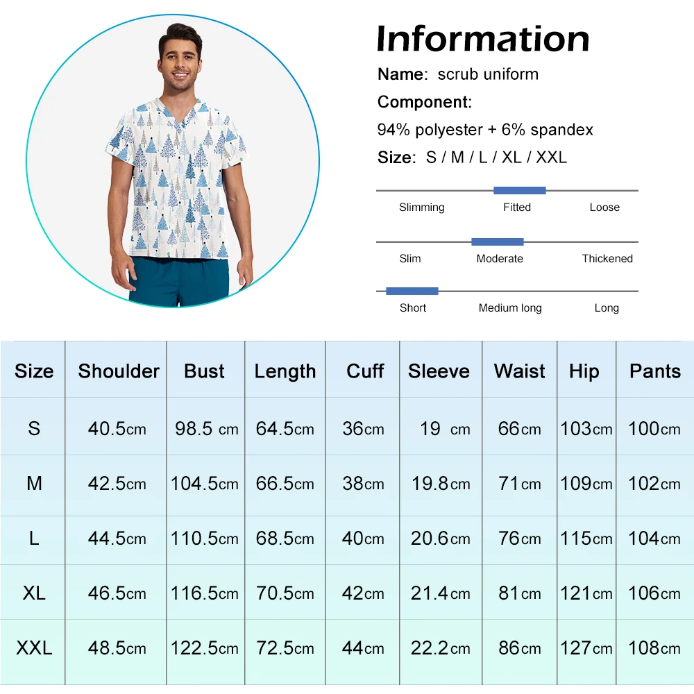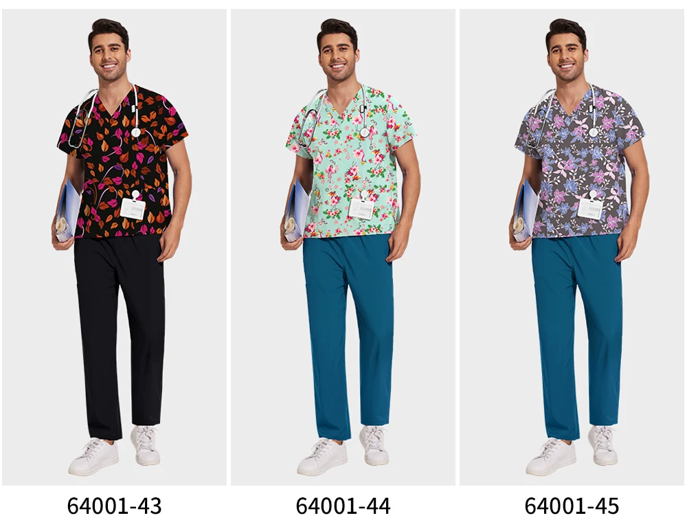Elevate your professional wardrobe with the High-Quality Unisex Scrub Nursing Uniforms. Designed for versatility and comfort, this printed hospital workwear set is perfect for various settings, including labs, beauty salons, and pet shops.