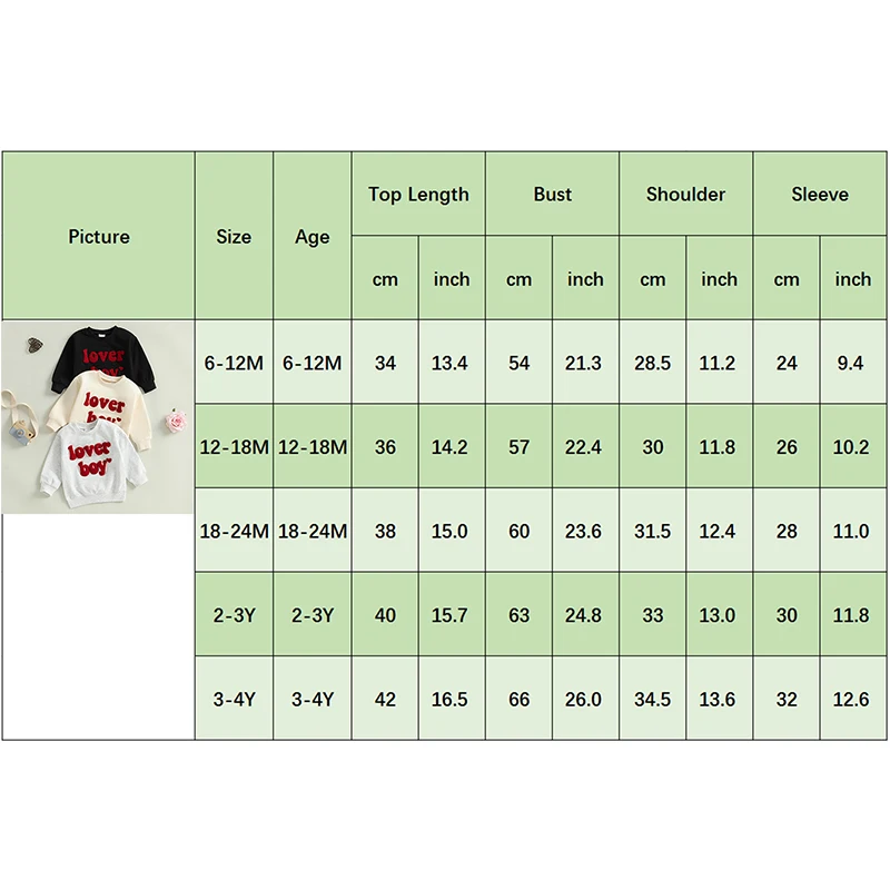 | Size (inch) | Length | Bust | Sleeve | Shoulder | Advised Age |