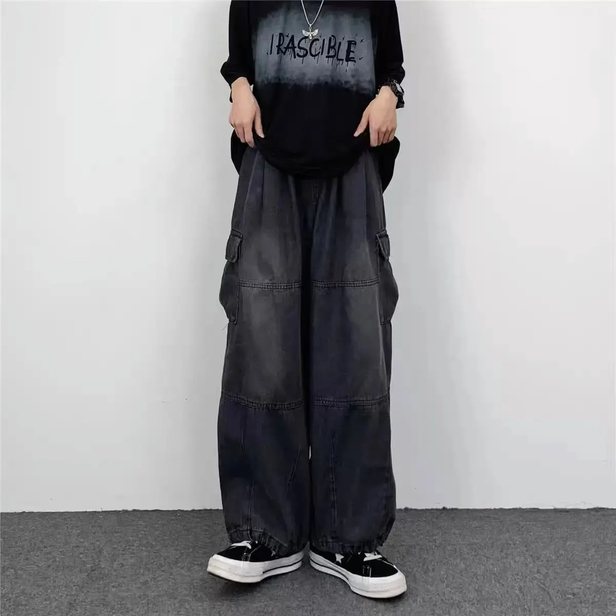 Vintage Wide Leg Overalls for Men – Y2K Big Pocket Streetwear Jeans