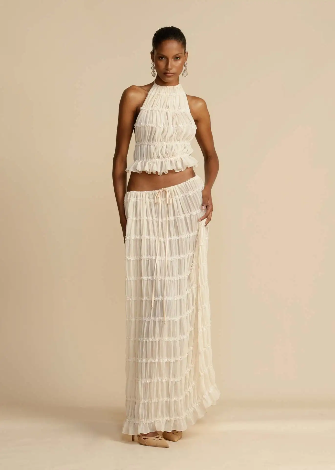 Women’s Halter Neck Backless Maxi Skirt 2 Piece Set Summer 2025 Outfits