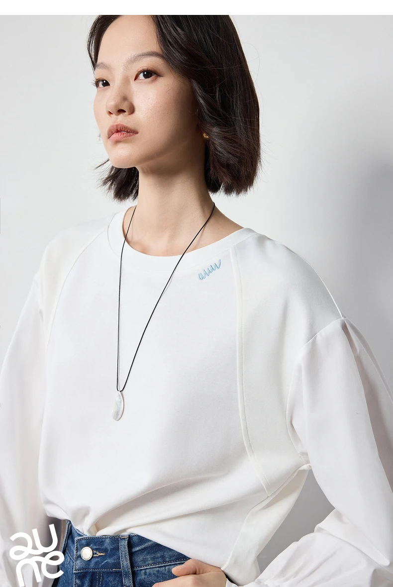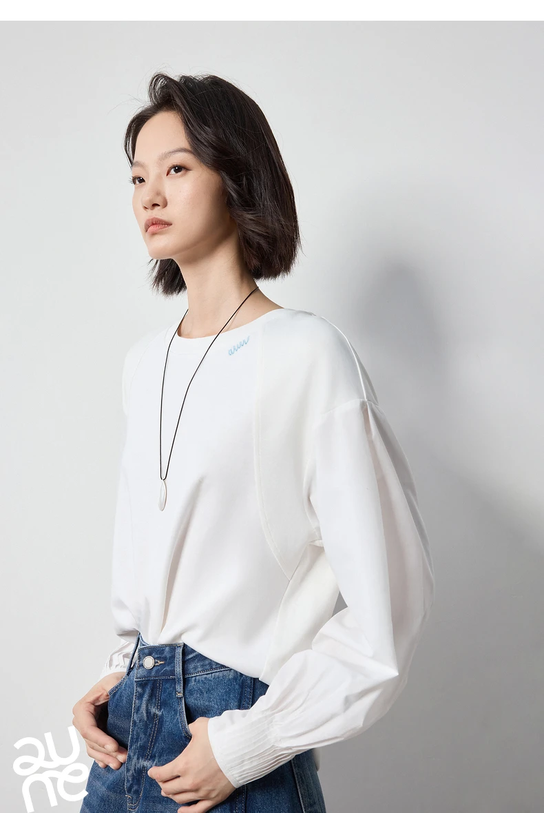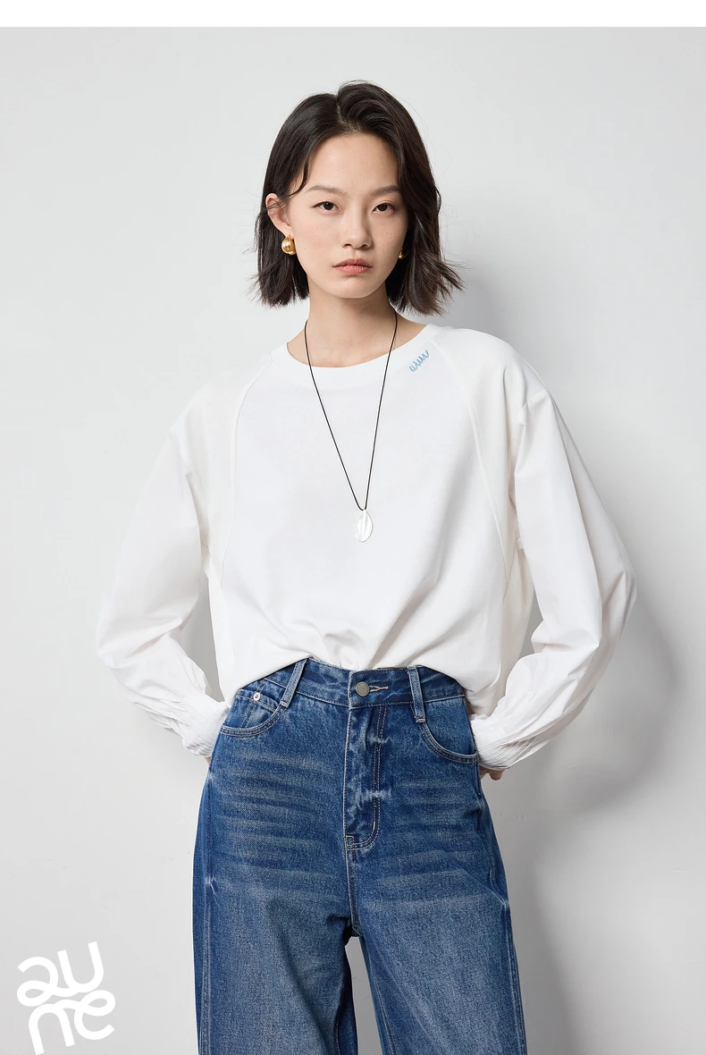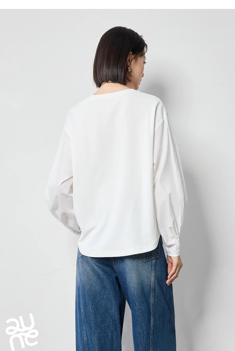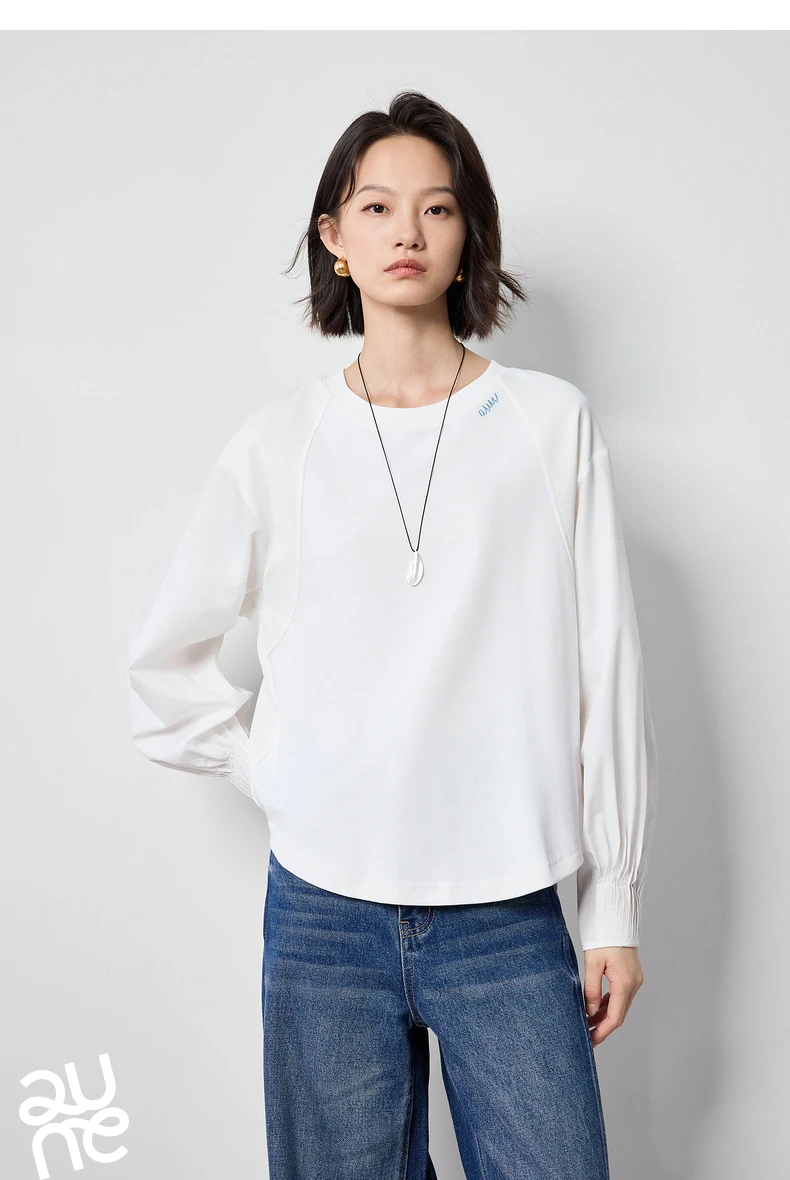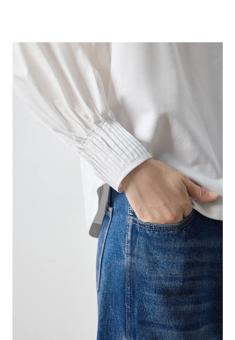 Women’s Pleated Cotton Tee – Casual White Round Neck Top